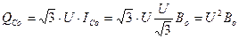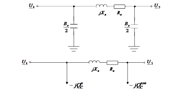 Мощность – зарядная мощность линии и в расчетах режима электросетей учитывается со знаком «минус». Величина зарядной мощности, сосредоточенной по концам П-образной схемы замещения определяется по действительному напряжению начала и конца линии: