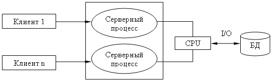 для обслуживания большого числа клиентов на сервере должно быть запущено большое количество одновременно работающих серверных процессов, а это резко повышает требование к ресурсам ЭВМ, на котором запускались все серверные процессы.