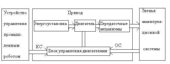 Под приводом ПР понимается совокупность технических средств, предназначенных для приведения в движение всех звеньев манипуляционной системы и схвата рабочего органа в соответствии с требованиями производственного процесса. В функциональном отношении привод помещается между устройством управления ПР и звеньями манипуляционной системы так, как это показано на рис. 4.1.