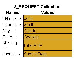 Когда значения данных оказываются в массиве $_Request, их можно легко использовать по их именам, применяя следующий синтаксис: