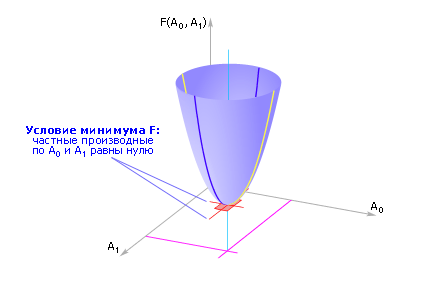 Суммарная ошибка F является функцией двух переменных A0 и A1, то есть F(A0, A1), меняя которые, можно влиять на величину суммарной ошибки (см. рис. 2.4).