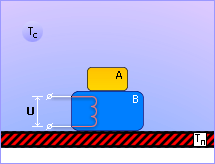 Пример. Пусть исследуется система двух материальных тел A и B с различными теплофизическими свойствами (см. рис. 11.1). Система контактирует с опорой с температурой Tп и помещена во внешнюю среду с температурой Tc. Интересует протекание процесса изменения температур тел.