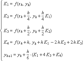 И две схемы Рунге-Кутты, имеющие четвертый порядок аппроксимации: