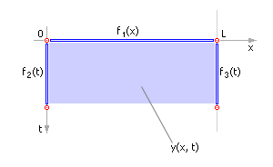 y(x, 0) = f1(x), y(0, t) = f2(t), y(L, t) = f3(t), где f1(x), f2(t) и f3(t) — заданные функции.