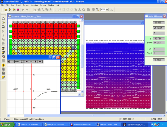 Рис. 19.6. Распространение тепла по элементам двухмерной системы (расчет статической задачи, представленной на рис. 19.1). В отдельном окне видна оценка точности расчета в зависимости от количества итераций