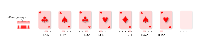 Рис. 23.5. Иллюстрация работы генератора случайных чисел на примере выбора карт из колоды