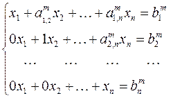 В результате прямого хода матрицы системы за m преобразований приводится к треугольному виду: