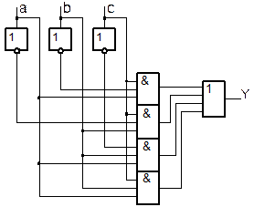Очевидно, что Y = 1, когда или ac = 1 (строка 1), или (строка 3), или (строка 6), или (строка 7).