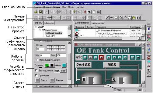 Графический интерфейс операторских станций создается в редакторе представления данных, вид которого показан на рис. 1.