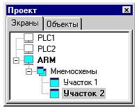 Навигатор проекта имеет два бланка. Первый из них Экраны предназначен для работы с графическими базами, а второй Объекты – для работы с библиотеками графических объектов.