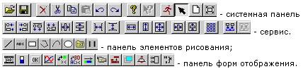Панели элементов рисования и форм отображения используются для выбора размещаемых графических элементов. Почти всем пиктограммам в этих инструментальных панелях соответствуют группы графических элементов.