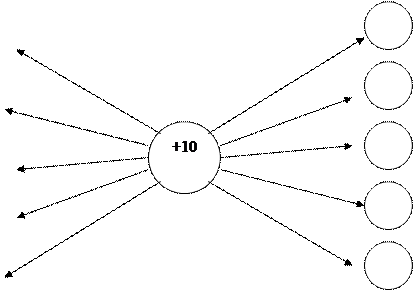 С другой стороны, данная модель позволяет эффективно использовать мыслительные особенности ребенка с преобладанием синтетического типа мышления ( а их среди первоклассников большинство), которые предрасположены к работе с наглядными моделями изучаемых понятий. Используемая модель понятия (двузначного числа) позволяет такому ребенку в конкретной деятельности моделировать сам прием вычисления, в то же время являясь основой для самопроверки (т.е. дает возможность убедиться в правильности ответа). Десятичная модель числа выглядит следующим образом (дети назвали ее «солнышко»):