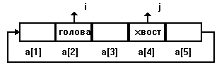 Пусть i – индекс элемента массива, хранящего "голову" очереди, а j – индекс первого свободного элемента массива, куда поступает новый элемент очереди ("хвост"). Тогда выборка очередного элемента очереди сводится к выполнению операций