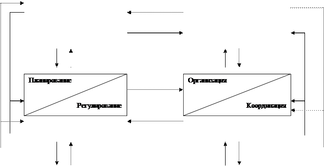 Каждый из шести блоков функций, показанный на схеме, представляет собой обособленный этап процесса управления объектом, проектом, организацией. В каждом блоке – два вида функций, взаимосвязанных между собой и взаимодополняющих друг друга.