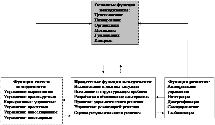 Функции профессионализации следует рассматривать как связующие звенья в методологии исследования управленческой деятельности. На схеме показаны взаимосвязи видов деятельности или функций менеджмента, последовательность их формирования и оценки, а также место в процессах развития экономики и менеджмента.