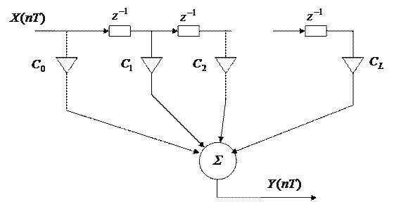 Уравнение, связывающее входные и выходные величины, для нерекурсивного фильтра имеет вид: