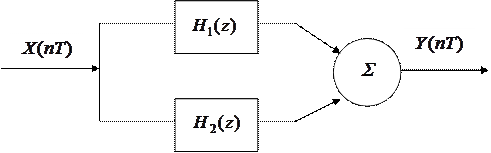 По этой схеме вычисления входной сигнал поступает на вход фильтров , а выходные сигналы фильтров складываются.