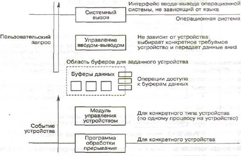Поэтому между модулями ввода-вывода, которые вызывает приложение (сверху вниз), и модулями, вызываемыми в ответ на события устройства (снизу вверх), необходимы буферы данных (рис. 11.4).