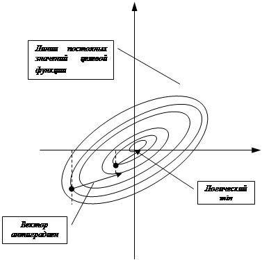 Движение по направлению вектора под острым углом будет приводить к уменьшению целевой функции, а движение против направления функции к увеличению целевой функции. Разумно за направление движения принять сам вектор – grad f.