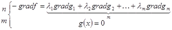 Необходимое условие: Если мы находим точку, где вектор градиента принадлежит ортогональному дополнению к пространству, заданному ограничениями – равенствами, то эта точка может быть точкой локального минимума.