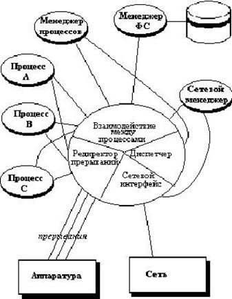 · обеспечения взаимодействий между процессами посредством передачи сообщений.
