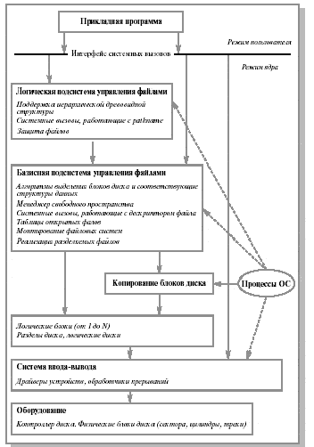Для организации хранения информации на диске пользователь вначале обычно выполняет его форматирование, выделяя на нем место для структур данных, которые описывают состояние файловой системы в целом. Затем пользователь создает нужную ему структуру каталогов (или директорий), которые, по существу, являются списками вложенных каталогов и собственно файлов. И наконец, он заполняет дисковое пространство файлами, приписывая их тому или иному каталогу. Таким образом, ОС должна предоставить в распоряжение пользователя совокупность системных вызовов, которые обеспечивают его необходимыми сервисами.