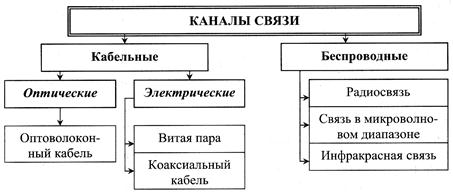Выделяют следующие виды каналов связи: