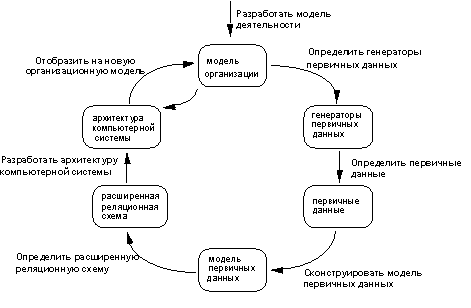 определить стабильную структуру, на основе которой будет строиться ИС. Такой структурой является модель данных, полученная из первичных данных, представляющих фундаментальные процессы организации;