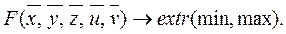 Формализованное описание объекта заключается в определении его целевой функции (функции цели), выражающей связь между показателем цели (критерием) и параметрами состояния, входов и выходов, факторов возмущения и управления. Достижение цели соответствует экстремальным значениям целевой функции, а задача принятия решения сводится к нахождению максимального (или минимального) значения целевой функции и векторов параметров , при которых оно достигается, т.е.