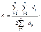 и равной отношению общего числа ступеней связей в системе к суммарному числу ступенчатых связей i-го элемента. Центральность Zi характеризует степень удаления i-го элемента от других элементов системы. Чем больше Zi, тем больше кратчайших путей приходит через i-й элемент.