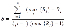 показывающей отношение среднего отклонения ранга элемента от максимального к максимальному рангу.