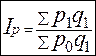 где: . В таком виде индекс цен выступает как средняя гармоническая величина из индивидуальных индексов цен, взвешенных по сумме фактического товарооборота отчётного периода (p1, q0 ). Следует обратить внимание, что только при такой системе весов средний гармонический индекс цен будет тождественен исходному агрегатному индексу и даст количественно тот же результат. Всякая иная система весов неприемлема.
