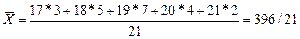 Средний возраст должен представлять собой результат равномерного распределения общего (суммарного) возраста всех студентов. Общий (суммарный) возраст всех студентов, согласно исходной информации табл. 3, можно получить как сумму произведений значений признакав каждой группе Xi, на число студентов с таким возрастом fi(частоты). Получим формулу (11):