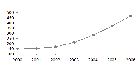 Данные табл. 27 и рис. 13 наглядно иллюстрируют ежегодный рост внешнеторгового оборота (ВО) в России за период 2000-2006 гг.