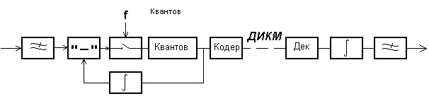 ∫-р к предыдущей квантованной разности добавляет последующую квантованную разность и итоговая величина в « - » сравнивается с текущим отсчетом.
