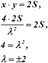 Пример 2.Из всех прямоугольных треугольников с заданной площадью S найти такой, гипотенуза которого имеет наименьшее значение.