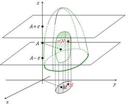 Определение. Число A называют пределом функции в точке M, если для любого положительного можно указать такое положительное число , что как только некая точка N (не совпадающая с M) попадает в -окрестность точки M, так сразу значение функции в точке N попадает в -окрестность числа A.