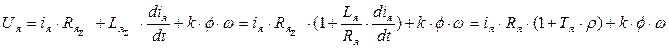 Здесь Тв, Тя – соответственно электромагнитные постоянные цепи возбуждения и цепи якоря. Обмотки ДП и КО являются вспомогательными. Поэтому в дальнейшим на схеме двигателя из изображать не будем, а их сопротивления и индуктивности учитываются в RяS и LяS.