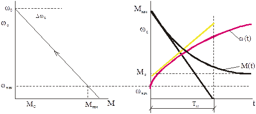 В этом случае зависимость w=f(t) должна оставаться неизменной при разных Мс, а момент двигателя при этих разных Мс будет изменяться.