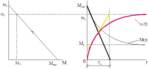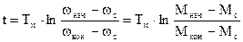 Величину Тм можно определить проведя касательную в любой точке кривой w(t) или М(t), например, в начале координат, как показано на графиках или используя следующие выражения