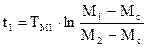 Для расчета переходного процесса при многоступенчатом пуске сначала строится пусковая диаграмма по ранее изложенным правилам задавшись пусковым и переключающим моментами. Для любой ступени разгона время, в течение которого момент изменяется от М1 до М2 может быть определено по формуле
