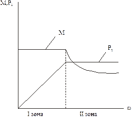 Мощность Р2 на валу двигателя в этой зоне изменяется по линейному закону, т.е. она пропорциональна скорости .
