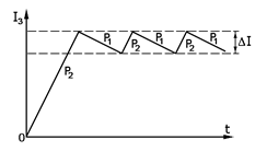 Регулирование тока осуществляется двумя комбинациями режимов включения ключом КЛ1 и КЛ2. В двигательном и тормозном режимах малых скоростей регулирование тока осуществляется согласно изображенному графику. В двигательном и тормозном режимах больших скоростей регулирование тока относительно заданного значения осуществляется комбинацией режимов Р1, Р2, Р0, как показано на следующем графике.