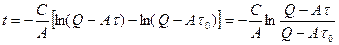 Для получения зависимости t=f(t) при охлаждении двигателя от tу1 до tу2, можно воспользоваться ранее полученным уравнением, подставив в него вместо tу - tу2, а вместо t0-tу1. Тогда