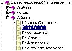 Например, с функционированием объекта прикладного решения Справочник связан ряд событий, среди которых есть событие ПередЗаписью: