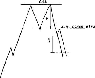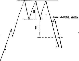При срабатывании фигуры «голова - плечи» - отработка цены вниз на величину высоты головы Н. Далее коррекция может пойти и еще глубже, но не всегда.