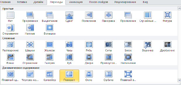 увеличить изображение Рис. 1.22. Переход от одного слайда к другому с 3D эффектом "Поворот"