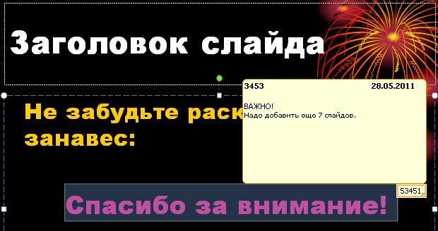 Примечание - это заметка, которую можно прикрепить к букве или слову на слайде либо ко всему слайду.