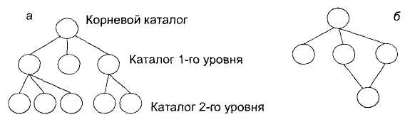 Рис. 3.2. Структура каталога: а — древовидная; б — сетевая
