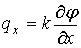 где q – поток тепла в направлении х на единицу длины за единицу времени, j(x,y,t) – распределение температуры.